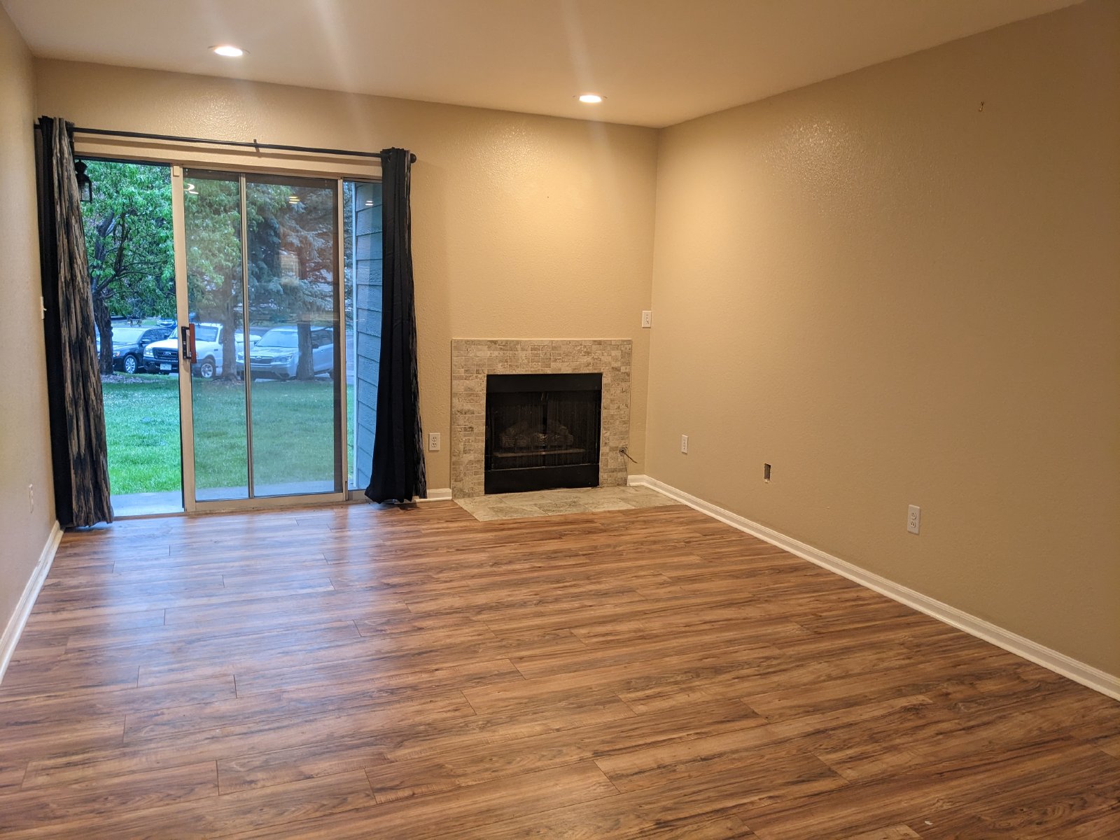The home features wood floors, a fireplace, dishwasher, and in-unit clothes washer and dryer. throughout the living areas.